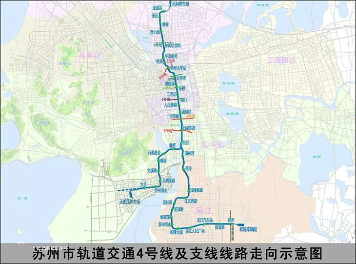 蘇州軌道交通4號線,呈南北走向,連接相城區、姑蘇區、吳中區和吳江區,是蘇州城市發展的一條骨干線路。